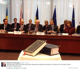 La parte politica dell'accordo Ue-Ucraina appena firmato include i capitoli sui valori democratici e sulla politica estera e di sicurezza, in particolare una cooperazione rafforzata su questioni regionali, prevenzione dei conflitti, gestione delle crisi, armi di distruzione di massa e disarmo. I leader Ue si sono impegnati a firmare i restanti capitoli economico-commerciali, energetici e sulla liberalizzazione dei visti successivamente, dopo le elezioni presidenziali ucraine di maggio, mentre il primo incontro del dialogo Ue-Ucraina si terrà ad aprile.