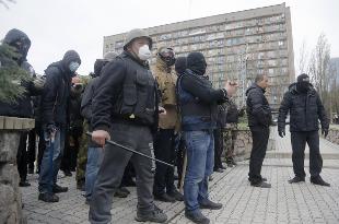 Slavjansk, nell'Ucraina orientale, a un centinaio di kilometri da Donetsk, è una città isolata e occupata. Un gruppo di dieci filorussi, armati e in mimetica, hanno alzato barricate con pneumatici e sacchi di sabbia in tutti i punti d'accesso della città: sono checkpoint improvvisati, un cordone paramilitare che la separa dal resto del Paese. In cima ad ogni "posto di blocco", le bandiere regionali o quelle russe. Sembra ripetersi lo "schema Crimea": stesse divise anonime senza mostrine e senza distintivi, secondo alcuni le milizie di autodifesa, come si fanno chiamare, hanno anche le stesse armi. Dopo aver tentato la strada del dialogo e dell'apertura, il presidente ad interim Oleksander Turchynov ha convocato in serata un vertice di sicurezza dopo i continui assalti ai palazzi governativi nell'Est, dove la situazione precipita di ora in ora.definendo definito gli attachi "un'aggressione ordita dalla Federazione Russa".