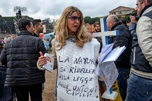 "La piazza è l'unico modo civile e onesto, per noi che non abbiamo lobby potenti, per mostrare qual è il sentire comune", ha aggiunto Gandolfini secondo il quale "l'uomo e la donna formano il matrimonio, le altre sono alchimie". Non vogliamo fare guerre a nessuno, né ghettizzare nessuno - ha proseguito - ma alle elezioni, anche a quelle amministrative ricordiamoci chi si è messo con la famiglia e i bambini e chi si è dimenticato di questo diritto rendendo possibile l'abominevole pratica dell'utero in affitto". Ai politici ha chiesto anche: "L'Italia è un paese ricchissimo tanto da potere allargare il diritto ad avere la pensione? Nel nostro paese un milione e 420 famiglie sono al di sotto della soglia di povertà". Infine, ha fatto un grande appello "alla coscienza dei parlamentari, se potranno esprimersi secondo coscienza. Un giorno delle vostre azioni dovrete rendere conto".