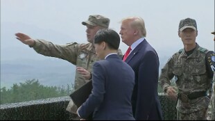 "Qui c'era un grande conflitto, un tremendo conflitto e morte tutto qui intorno. Era un posto pericoloso, molto pericoloso", ha detto Donald Trump visitando per la prima volta la torretta d'osservazione alla Dmz, prima dell'incontro con il leader nordcoreano Kim Jong-un. "Adesso, sembra estremamente pacifico. E' un mondo completamente differente e lo dico ancora per quelle persone che dicono che niente è stato raggiunto". Tutto è cambiato da quando "ho iniziato a incontrare" Kim, ha aggiunto.(