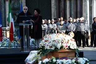 A chiusura della parte pubblica della cerimonia ci sarà l'inno europeo. Successivamente la salma lascerà San Marco diretta al cimitero, dove amici e parenti saluteranno Valeria, per cui il Comune, per desiderio dei familiari, ha trovato una tomba vicino a quella del nonno.