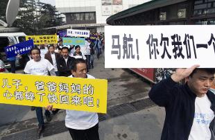 Prima di lasciare la zona, i familiari hanno consegnato una lettera di protesta all'ambasciata. Molti di loro affermano che non sia stata detta loro tutta la verità sulla sorte del Boeing 777 della Malaysia Airlines scomparso l'8 marzo scorso dopo il decollo da Kuala Lumpur e precipitato nell'Oceano Indiano. Altri affermano che le autorità malesi abbiano nascosto di proposito alcune informazioni, pur sapendo già prima che il velivolo era caduto nell'oceano.