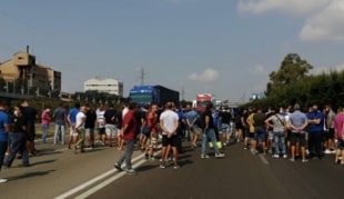 Stamane un gruppo composto inizialmente da una sessantina di lavoratori del siderurgico ArcelorMittal di Taranto ha bloccato un tratto della Strada Statale 100, davanti alla fabbrica.