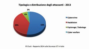 Il cybercrime supera ormai stabilmente il 50% del totale (dal 36% del 2011 al 54% del 2012, confermato anche nel 2013 con il 53%), mentre l'hacktivism è in forte crescita (in particolare quello di origine non-occidentale, fenomeno particolarmente preoccupante), passando in percentuale dal 24% del 2011 al 31% del 2012 al 39% del 2013, con un aumento del 22,5% rispetto al 2012.