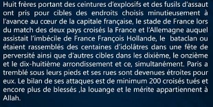 #ISIS released the English translation of claim for #ParisAttacks + audio files of the claim in French and Arabic pic.twitter.com/6xbcvARGgH