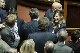 Poi, a chi le chiede di commentare il non voto della riforma da parte di sedici "dissidenti" del Pd, risponde: "Spero che" i senatori Pd che non hanno partecipato al voto sulla riforma costituzionale "possano cambiare idea nei prossimi passaggi. Noi continuiamo nel dialogo, mi auguro che cambino idea in futuro". "Io e alcuni colleghi del Pd che ci siamo ritrovati in questi mesi" in una proposta alternativa di riforma, "restando in Aula come nostro dovere, non parteciperemo al voto", aveva annunciato Vannino Chiti in merito al ddl. Non è stato precisato il numero dei senatori. "Il nostro sistema pubblico ha bisogno di riforme finalmente realizzate, non solo immaginate", dice invece il capogruppo Pd Luigi Zanda. Mentre il capigruppo di Fi Paolo Romani ha tenuto la sua dichiarazione di voto sulle riforme, tutti i senatori del M5S hanno lasciato l'Aula attraversandola platealmente in fila indiana dietro al loro capogruppo Petrocelli.