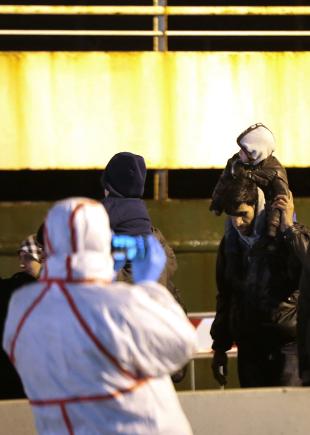 Una volta ormeggiata, è iniziato lo sbarco dei migranti. Il portavoce della Guardia Costiera, Filippo Marini: "A bordo c’erano 243 uomini, 43 donne e 74 bambini". Le loro condizioni di salute sono buone: sono stati segnalati solo alcuni casi di ipotermia. Gli immigrati saranno avviati in alcuni centri di accoglienza, dove si procederà alla loro identificazione.