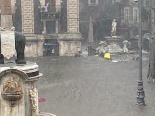 Il nubifragio che per ore si è abbattuto su Catania ha trasformato le strade della città, e in particolare la centralissima via Etnea, in un fiume in piena, e piazza Duomo in un lago. Allagato lo storico mercato della 'Pescheria' e invasa anche la fontana da dove emerge per un tratto il fiume sotterraneo Amenano.