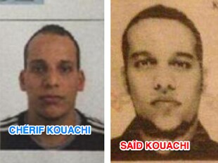 I due principali sospettati della strage sono i fratelli franco-algerini di 32 e 34 anni, Saïd Kouachi, Chérif Kouachi, tornati dalla Siria quest'estate. Il terzo complice, il 18enne Hamyd Mourad farebbe a sua volta parte della famiglia in quanto porterebbe lo stesso patronimico