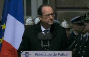 Il presidente francese ricorda uno per uno i tre poliziotti uccisi, Clarissa Jean-Philippe, Ahmed Merabet e Franck Brinsolaro. Poi, chiamandoli per nome, ne racconta il coraggio e l'eroismo quotidiano. Prima dell'inno un commovente abbraccio con la madre di Clarissa, la poliziotta morta per un colpo alle spalle a Montrouge.
