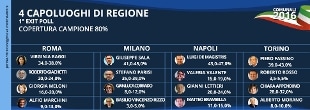 ITALIA2016/06/05 22:41 Dimensione testo Invia ad un amico Stampa l'articolo Urne chiuse alle 23 Exit poll comunali: i ballottaggi a Roma, Milano, Napoli e Torino Iniziato lo spoglio delle schede per l'elezione di oltre 1.300 sindaci e consigli comunali Amministrative, si vota per oltre 1.300 sindaci e consigli comunali. Alle 19 affluenza del 46,01% Amministrative, le curiosità nelle liste Condividi 05 giugno 2016Ecco i risultati degli exit poll diffusi alla chiusura delle urne per le elezioni comunali a Roma, Milano, Napoli e Torino. Condividi