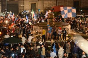 Migliaia di tifosi si sono radunati in Piazza Trieste e Trento dove si scatena tradizionalmente la festa per le vittorie del Napoli. Decine di bambini, nonostante la temperatura, si sono lanciati nella fontana in piazza, divenuta ormai una piscina, mentre in ogni angolo della piazza esplodono fuochi d'artificio e si accalcano ambulanti che vendono bibite e birra per festeggiare.