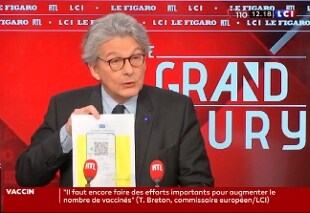 Il commissario europeo responsabile dei vaccini, Thierry Breton, in un intervento al programma di Rtl e Le Figaro 'Le Grand Jury' ha presentato agli spettatori un facsimile del certificato sanitario che questa estate dovrà consentire ai cittadini di riprendere gli spostamenti all'interno dell'Unione Europea.