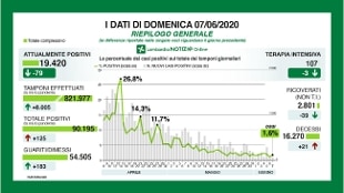 Ecco i dati di oggi, domenica 7 giugno, forniti dalla Regione sull'epidemia di coronavirus in Lombardia.