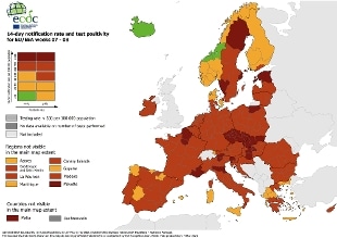 L'Emilia Romagna è in rosso scuro, insieme alle province di Trento e Bolzano, nella mappa aggiornata dal centro europeo per la prevenzione e il controllo delle malattie (Ecdc) sull'incidenza dei contagi da Covid-19 nell'Ue.