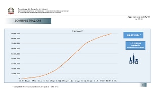 Dato principale è il numero di somministrazioni che sono 89.473.584 ( alle 8,30 di venerdì 29 ottobre) con un incremento di +1.112.844. La fascia di età con il maggior numero di non vaccinati è quella tra i 40-49 anni con 1.505.945 persone ancora non coperte (pari al 17,14% della popolazione di quella età), segue la fascia tra i 50-59. La fascia di età più vaccinata è quella sopra agli 80 anni dove mancano all'appello solo 216.364 somministrazioni.