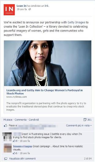 La campagna dell'organizzazione no profit LeanIn, in collaborazione con Getty Images, propone un repertorio di immagini che superino i pregiudizi. Le donne sono mostrate sullo skateboard o nel ruolo di fornaie, pittrici e manager