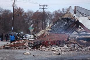 Nella piccola cittadina del Missouri migliaia di persone hanno manifestato per tutta la notte tra lunedì e martedì. "Quelli che hanno terrorizzato la città sono dei criminali", ha commentato il governatore del Missouri Jay Nixon che ha dispiegato nella serata di martedì centinaia di agenti per strada per evitare nuovi disordini.Lunedì notte, fumogeni e lacrimogeni sono stati utilizzati per disperdere i manifestanti. Un reporter è stato colpito da un pugno e gli è stato rubato il portafoglio. Il governatore del Missouri, il democratico Jay Nixon, ha ordinato l'invio di ulteriori uomini della Guardia Nazionale. Un poliziotto è rimasto ferito a University City nella contea di St. Louis, in cui ricade anche la stessa Ferguson. Nella protesta ci sono stati almeno 14 i feriti. Un'ottantina gli arresti. Intanto su twitter #FergusonDecision è diventato uno degli hashtag più condivisi sul sito di microblogging: