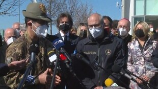 Il commissario per l'emergenza: "Se ci vacciniamo, ne usciamo". Curcio: "Bene lavoro di squadra. Qui ancora ferite aperte del sisma"