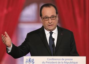 A un mese dalla strage di Charlie Hebdo e dalle 55 ore di sangue di Parigi il presidente François Hollande apre la conferenza stampa di inizio anno proprio a partire dal terrorismo: "La nostra prima responsabilità - ha detto - è di essere all'altezza della minaccia, che non è certo scomparsa", ricordando come sia riemersa con l'aggressione ai tre militari a Nizza.