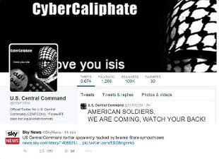 L'account Twitter del Comando centrale Usa per la regione mediorientale Centcom è stato sospeso dopo un attacco hacker da parte dell'Isis che ha inviato a nome del