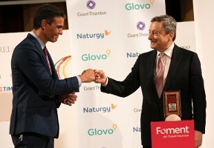 "Italia e Spagna non sono solo unite da profondi legami storici, politici e culturali. Sono partner strategici negli ambiziosi progetti che abbiamo davanti in Europa. La transizione ecologica, la digitalizzazione, la trasformazione delle nostre città. Insieme a Francia, Germania, e gli altri Stati membri, vogliamo costruire un'Ue più moderna, competitiva e solidale. Che superi le tradizionali divisioni tra Nord e Sud, e si mostri unita nel confronto con le altre potenze globali del nostro tempo", ha poi affermato Draghi foro di dialogo italo-spagnolo.