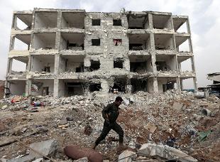 Kobane come Stalingrado, come Dresda: quattro mesi di assedio dell'Isis, di feroci combattimenti casa per casa, di raid aerei della coalizione internazionale e di cannoneggiamento hanno lasciato un desolata estensione di macerie dov'era la città curda siriana. Città divenuta il simbolo della resistenza curda all'avanzata delle forze dello Stato islamico. I fotografi entrati in città al seguito dei peshmerga curdi mostrano un paesaggio lunare, fatto di cumuli di laterizi e calcinacci, di strade ricoperte di macerie, di sinistri scheletri di palazzine completamente sventrate, colonne di cemento armato semidivelte.