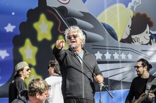Dopo aver fatto le ore piccole ad una festa con alcuni parlamentari M5s, Beppe Grillo a sorpresa è già sul palco della festa Italia 5 stelle alla fiera di Rimini. E a sorpresa per i pochi attivisti già presenti, canta sul palco eseguendo brani country e rock anni '70.