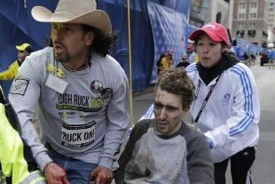 E Jeff Bauman, che perse entrambe le gambe nell'esplosione mentre sul traguardo attendeva la fidanzata, ha annunciato su Facebook l'imminente paternità. La foto che lo ritrae mentre veniva trasportato via stravolto e insanguinato su una sedia a rotelle dal soccorritore col cappello da cowboy è diventata una delle immagini del 15 aprile 2013: i medici dovettero procedere all'amputazione di tutte e due le gambe. Da Bauman gli investigatori ottennero informazioni decisive per identificare i sospetti, i fratelli Tsarnaev.