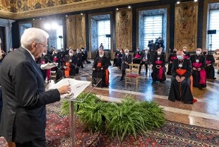 "Sono particolarmente lieto di accogliervi al Palazzo del Quirinale in occasione dell'Assemblea annuale del Consiglio delle Conferenze Episcopali d'Europa nel 50° anniversario della fondazione. Cinquanta anni in cui il Consiglio delle Conferenze Episcopali europee ha offerto un contributo prezioso alla crescita civile del nostro continente, confermando il ruolo delle Chiese nell'accompagnare e sostenere l'edificazione di un'Europa, ricca della varietà delle opzioni dei suoi popoli e, nel contempo, coesa nella capacità di coniugare le sue diverse manifestazioni nell'unità, attorno ai valori fondanti". Così il presidente Mattarella.