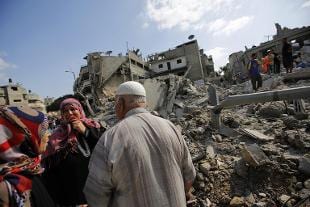 I bombardamenti compiuti dagli aerei israeliani poco prima dell'inizio della tregua umanitaria nella Striscia di Gaza hanno centrato all'alba un edificio a tre piani sterminando una famiglia: 22 morti, tra cui dieci bambini. Lo hanno raccontato testimoni a Khan Younes, descrivendo la disperazione di un anziano della famiglia al-Najjar, 85 anni, sopravvissuto. Al posto dell'edificio ci sono un cratere, rovine, pezzi di metallo contorti, abiti bruciacchiati.