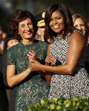 Le first lady hanno chiacchierato a lungo anche durante la cerimonia di accoglienza. Il loro ultimo incontro era stato a Milano quando Michelle visitò l'Expo a capo della delegazione statunitense di cui faceva parte anche lo chef stellato, Mario Batali che ha curato il menù della cena di Stato in calendario questa sera. La giornata odierna culminerà proprio con lo "state dinner", curato dallo stellato chef italoamericano Mario Batali e allietato dalla performance della cantante Gwen Stefani.