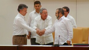 Il presidente colombiano è stato premiato per i suoi "sforzi tenaci per mettere fine a una guerra civile andata avanti più di 50 anni". Un premio che incoraggia "un processo più che un risultato", come ha detto la stessa presidente del comitato del Nobel norvegese, la signora Kaci Kullmann Five, "un riconoscimento al lavoro del presidente e anche un forte incoraggiamento a tutte le forze implicate nel processo perchè vadano avanti".