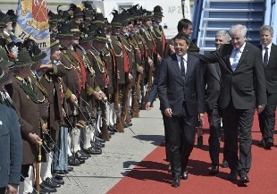 Ad aspettare il premier alla scaletta dell'aereo oltre al presidente della Baviera Horst Seehofer un gruppo di ragazzi nel tradizionale costume bavarese