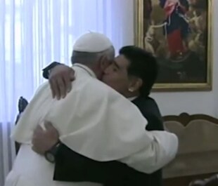 Quel giorno Maradona dichiarava che tra loro due "il vero fuoriclasse" era il Pontefice e confessava di essersi allontanato dalla Chiesa ma di aver sentito profonda vicinanza con Francesco per la sua attenzione verso i poveri. "Cosa mi ha detto il Papa? Che mi stava aspettando". Ai microfoni della Radio Vaticana, Diego Armando Maradona lanciava poi un messaggio di pace: "Quello che noi auspichiamo è che la gente prenda coscienza che il meglio per tutti è la pace".