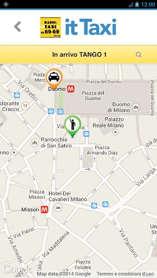 Dopo aver effettuato la registrazione, IT Taxi individua la posizione dell’utente grazie alla geolocalizzazione e invia la richiesta direttamente alla centrale radiotaxi. Google Places è integrato nell’app, per poter indicare uno specifico punto d’interesse in cui si desidera richiedere l’auto (come ad esempio il Colosseo o la Mole Antonelliana). Con una notifica verranno inviati la sigla della vettura e il tempo di arrivo.