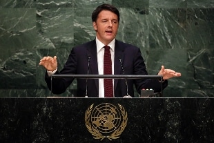 Renzi ricorda la storia del piccolo Aylan, ripreso senza vita sulla spiaggia di Bodrum, "ucciso dai nuovi schiavisti". L'Italia è candidata ad un seggio non permanente nel Consiglio di Sicurezza
