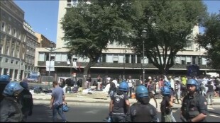 Roma. Momenti di tensione tra migranti e agenti durante sgombero di un palazzo occupato