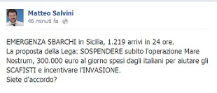Il segretario della Lega su Fb: "Costa 300mila euro al giorno"