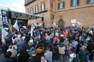 La manifestazione del Movimento 5 Stelle punta a portare in piazza i cittadini scontenti del governo Crocetta e mira a raccogliere le firme contro il governatore. Il leader M5S si scaglia contro il Colle e poi parla della mafia: "Prima aveva una morale, poi sono arrivati gli uomini d'affari. Converrebbe quotarla in borsa"