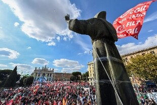 Quella di oggi è una "giornata importante per una risposta forte, unitaria contro fascismi, estremismi, derive antidemocratiche. Un presidio forte, una mobilitazione necessaria". Così il leader della Cisl, Luigi Sbarra. "Portiamo in piazza le ragioni del lavoro, della partecipazione, valori fondanti della nostra democrazia e della nostra Repubblica - ha detto - il mondo del lavoro sarà come sempre un'argine". Sbarra ha aggiunto che serve "un cammino di condivisione, partecipazione, confronto e dialogo. Dobbiamo abbassare i toni e far prevalere la responsabilità. C'è un Paese da ricostruire. La piazza di oggi chiede al Governo di aprire un confronto per discutere delle riforme, dal lavoro al fisco e alle pensioni", ha detto ancora. "Tante volte le nostre bandiere, di Cgil, Cisl e Uil, si sono ritrovate a sventolare insieme a Piazza San Giovanni in momenti difficili e drammatici della nostra storia, come nel giorno del rapimento di Aldo Moro e dell'uccisione della scorta da parte delle Br, ha detto Sbarra. "Si proceda velocemente allo scioglimento delle organizzazioni neofasciste e neonaziste. L'arco parlamentare e costituzionale sia unito e deciso. E' un passo doveroso", ha aggiunto. "Oggi siamo qui nel giorno del rastrellamento del ghetto di Roma e mandiamo a Liliana Segre la nostra più forte vicinanza e solidarietà", ha detto ancora Sbarra. Sui vaccini il segretario generale della Cisl ha detto: "La campagna di vaccinazione ci porterà fuori dal tunnel, cosa si aspetta a mettere in campo un provvedimento" che lo renda obbligatorio? E' grave che governo e Parlamento non l'abbiamo ancora fatto per mera convenienza politica per nascondere evidenti contraddizioni nella maggioranza. E' grave che per non affrontare queste asimmetrie si siano scaricate tensioni sul mondo del lavoro". Il mondo del lavoro esprime "ogni giorno responsabilità. Lo abbiamo visto ancora ieri, nella prima giornata del green pass esteso nei luoghi di lavoro. Più di qualcuno ha cercato di soffiare sul fuoco. Lavoratrici e lavoratori hanno risposto dando l'ennesima prova di senso civico".
