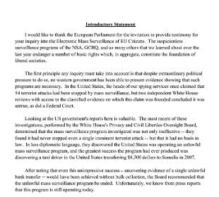 Le pressioni dell'Nsa, la raccolta di massa di dati di tutti i cittadini e l'"inutilità" di un programma di spionaggio che non ha prevenuto alcun attentato terroristico. Questa la denuncia della "talpa" Edward Snowden in una relazione di 12 pagine al Parlamento Europeo