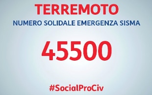 Su richiesta del Dipartimento della Protezione Civile, d'intesa con le Regioni colpite dal terremoto e grazie agli operatori di telefonia mobile e ai media, è stato attivato il numero 45500 per la raccolta di fondi attraverso l'invio di sms del costo di 2 euro. È possibile donare anche chiamando da rete fissa lo stesso numero. Il servizio è attivato con gli operatori nazionali Tim, Vodafone, Tre, Fastweb, CoopVoce, Wind e Infostrada, TWT, CloudItalia e PosteMobile. I fondi raccolti saranno trasferiti dagli operatori, senza alcun ricarico, al Dipartimento della Protezione Civile che provvederà a destinarle alle regioni colpite dal sisma.