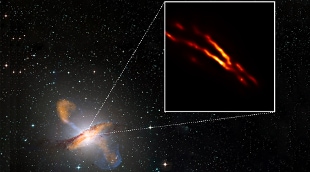 Fotografato lo spettacolare getto di plasma emesso da un gigantesco buco nero, con una massa milioni di volte il Sole. Si tratta di Centaurus A, al centro di una galassia a circa 11 milioni di anni luce dalla Via Lattea.