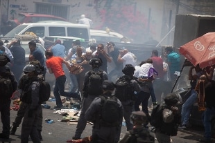 Protesta dei palestinesi contro la chiusura della Spianata delle Moschee, durante i disordini la polizia israeliana spara lacrimogeni e proiettili di gomma. Incidenti in Cisgiordania da Betlemme a Ramallah.