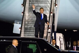Dopo essere scesi dall'Air Force One, nessuno ha parlato con i giornalisti, né Trump né i suoi consiglieri. Il presidente ha salutato scendendo le scale da solo e poi ha fatto grande sorriso salutando i responsabili di Singapore arrivati ad accoglierlo. Il presidente USa è poi salito sul suo veicolo corazzato diretto all'hotel dove alloggia, scortato da circa 30 auto.