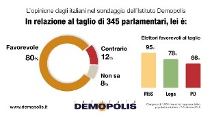Demopolis: 8 italiani su 10 favorevoli al taglio dei parlamentari