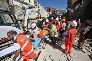 Un forte terremoto alle 3.36 di questa notte ha sconvolto il centro Italia provocando almeno 73 vittime, danni ingenti e feriti. Il presidente del Consiglio Matteo Renzi si è recato ad Amatrice con un elicottero, dove ha effettuato un sopralluogo nelle zone colpite ed ha parlato con il ministro Delrio e il capo della protezione civile Curcio, oltre che con i volontari ai quali ha stretto le mani. "Non è il momento di parlare", ha risposto ai giornalisti. E si è recato a Rieti per un vertice operativo