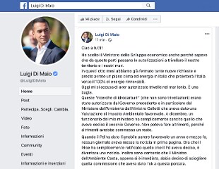 Secondo il vicepremier pentastellato: "Quando il Pd ha dato l’ignobile parere favorevole un anno e mezzo fa, nessun giornale aveva messo la notizia in prima pagina. Ora che il Mise ha semplicemente ratificato quello che il Pd aveva deciso, è diventata una notizia. Inoltre sono contento che il Ministro dell’Ambiente Costa, appena si è insediato, abbia deciso di sciogliere quella commissione che aveva dato l’ok a questa porcata", dice ancora.