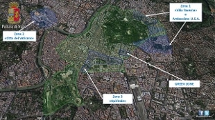 La zona di sicurezza Villa Taverna è l'area tra viale Rossini, via Paisiello, piazza Pitagora, viale Buozzi, via De Cavalieri e via Aldrovandi. Possibile accedere a questa zona solo passando da otto varchi presidiati dalla polizia, sei di questi anche per i veicoli.
